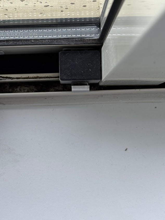 Correct: het lipje is ingedrukt, het raam is vergrendeld en kan niet meer schuiven.